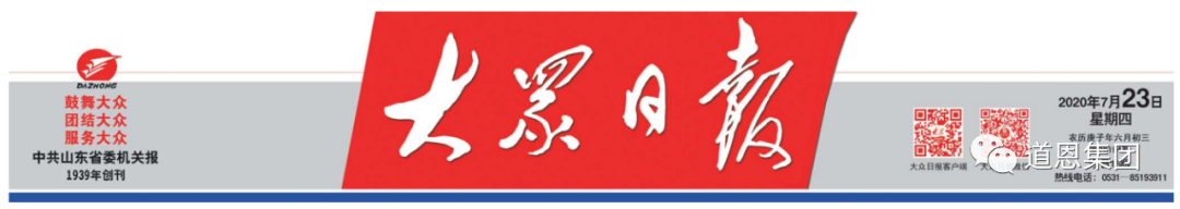 7月23日,《大众日报》二版头条刊发记者付玉婷、马景阳、刘磊、从春龙采写的文章《弘扬企业家精神,奋力实现更好更大发展——习近平总书记在企业家座谈会上的重要讲话在我省持续引发热烈反响》。该文首先关注道恩战“疫”保供的故事,并引援道恩集团董事长于晓宁学习总书记重要讲话的感言。