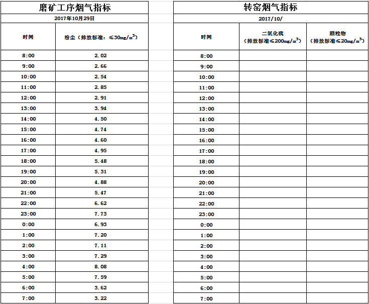 山东道恩钛业股份有限公司2017年10月29日磨矿工序烟气(因转窑仪器维修故无数据):