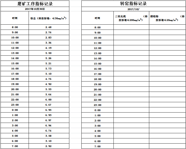 山东道恩钛业股份有限公司2017年10月31日磨矿工序烟气(因转窑仪器维修故无数据):