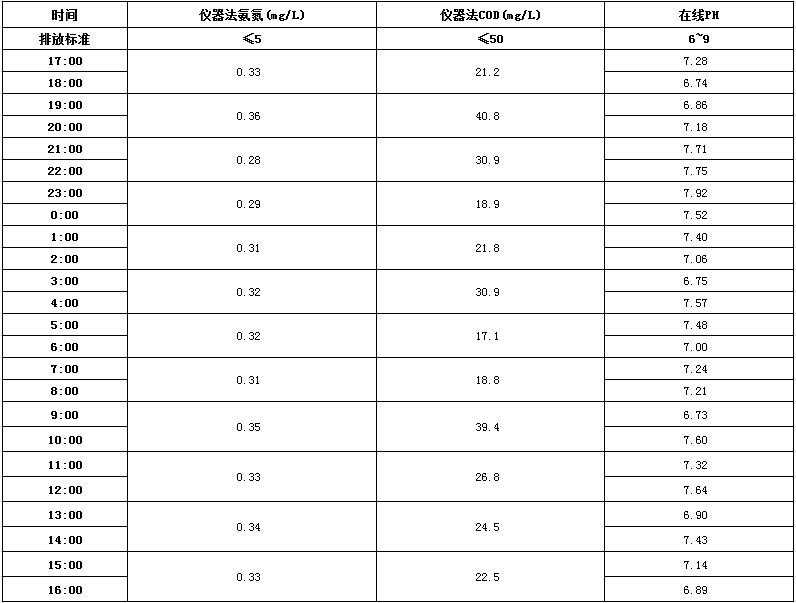 山东道恩钛业股份有限公司2017年11月24日外排水指标数据: