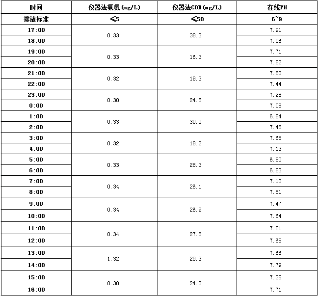 山东道恩钛业股份有限公司2017年10月21日外排水指标数据: