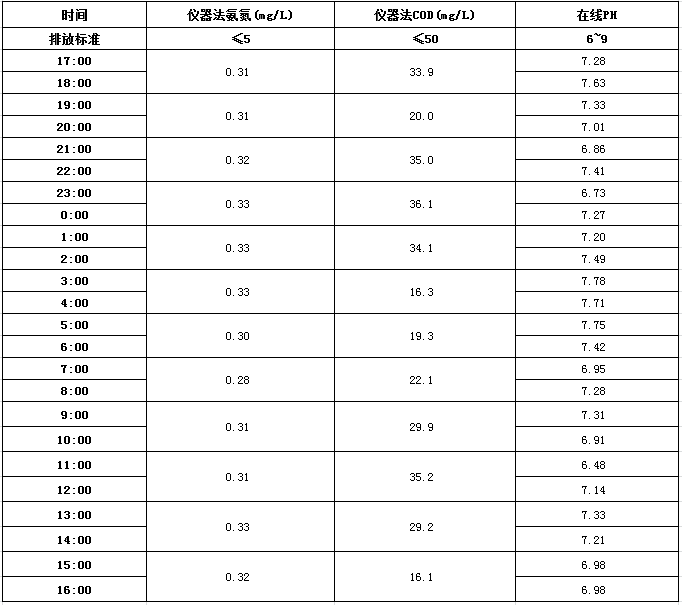 山东道恩钛业股份有限公司2017年10月19日外排水指标数据: